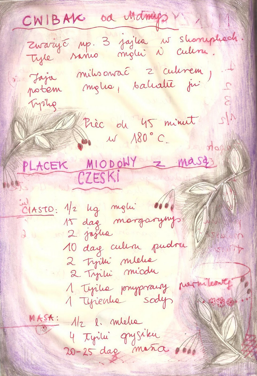 Od jakiegoś czasu spisuję w starym kalendarzu przepisy kulinarne ( głównie mojej Mamy ), które sama sprawdziłam. Powstaje z nich zeszyt, który chcę podarować Ewce na osiemnaste urodziny ( ale Jurek go dzisiaj zobaczył i powiedział że on też chce taki dostać...:-)